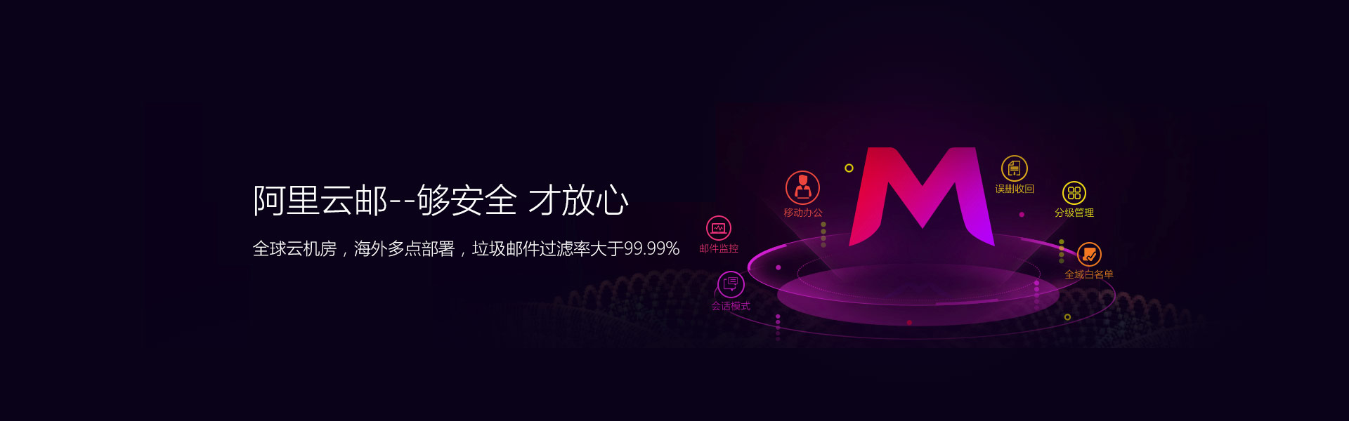 容量报警设置企业邮箱容量使用报警标尺,系统会自动发送容量报警邮件,减少存储容量超标,无法正常收取邮件带来的业务损失。